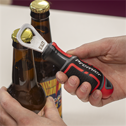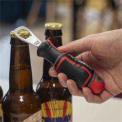 Sig farvel til utætte lightere, skrammede mobiltelefoner og frustrerede forsøg på at få hul på flasken! Denne oplukker fra Sealey har et ergonomisk håndtag i polypropylene med blødt TPV-gummi, så den ligger perfekt i hånden, selv når du prøver at imponere til fredagsbaren eller grillfesten - og så kan den bruges både til øl og sodavand.
