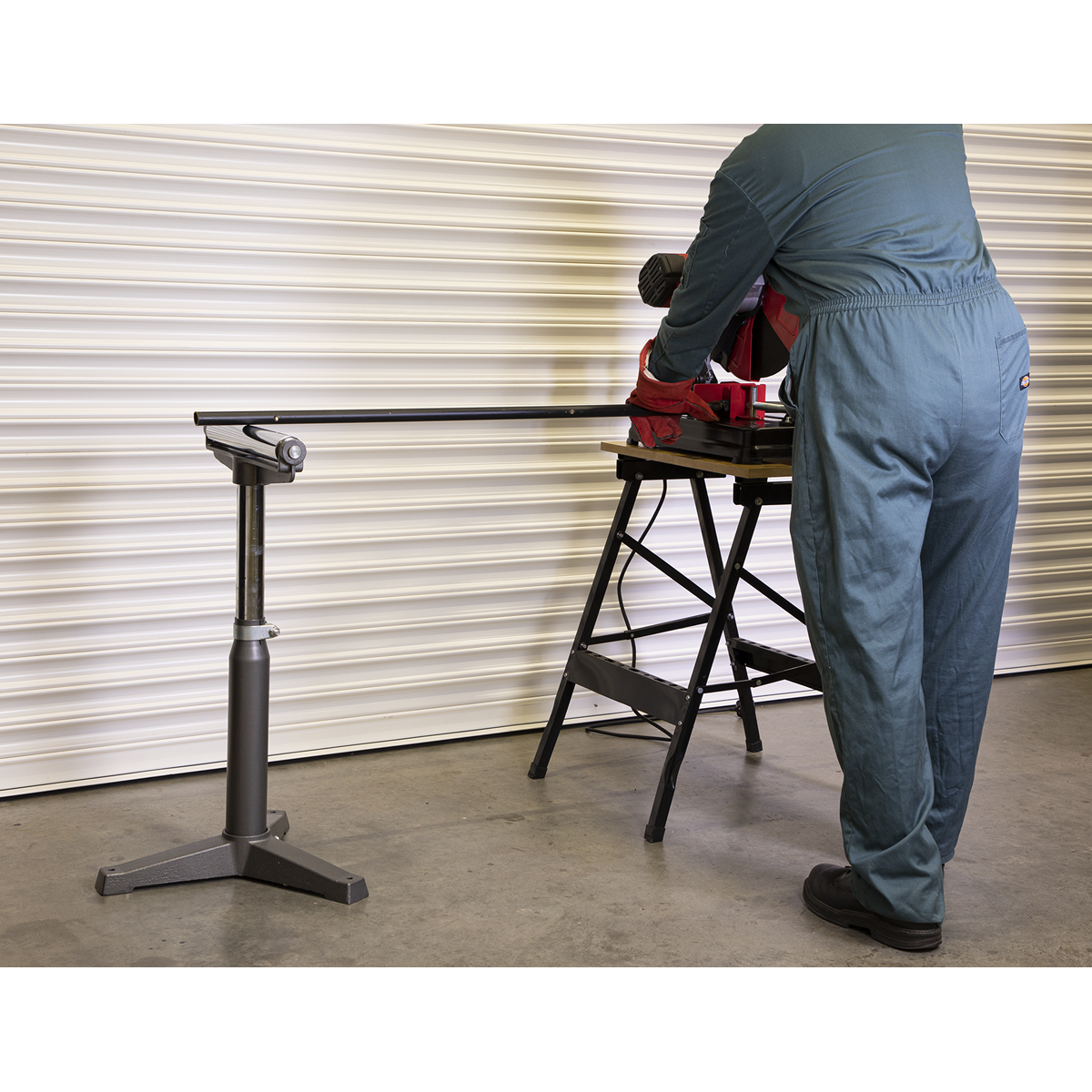 Denne heavy-duty rullebuk er udviklet til professionelle og industrielle miljøer, hvor der stilles høje krav til styrke, stabilitet og driftssikkerhed. Den er ideel til håndtering af lange, tunge eller uhåndterlige emner ved arbejde med fx save, fræsere og andre stationære maskiner.